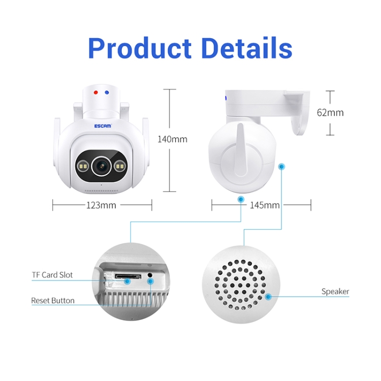– Coding standard: Built-in omnidirectional noise reduction microphone and speaker, supports two-way real-time audio transmission, G.711a audio compression standard, adaptive code stream