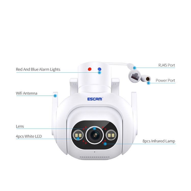 – LED lights: white light infrared full color day and night, 8 infrared lights, 4 white lights