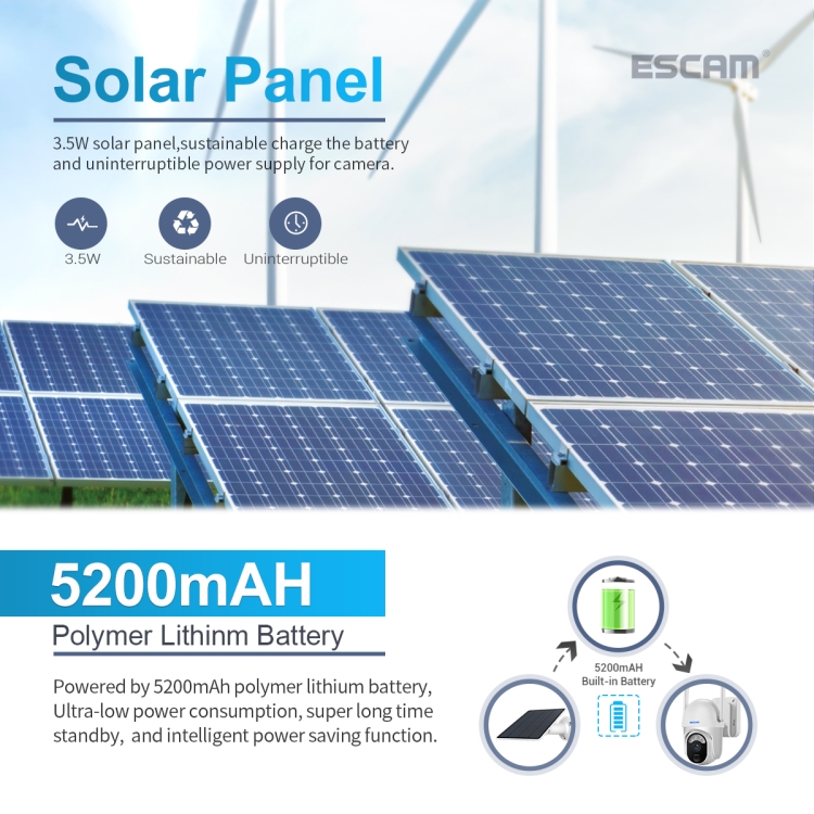 3. Built-in 5200mAh battery, removable solar panel for continuous charging, ultra-low power consumption, ultra-long standby time