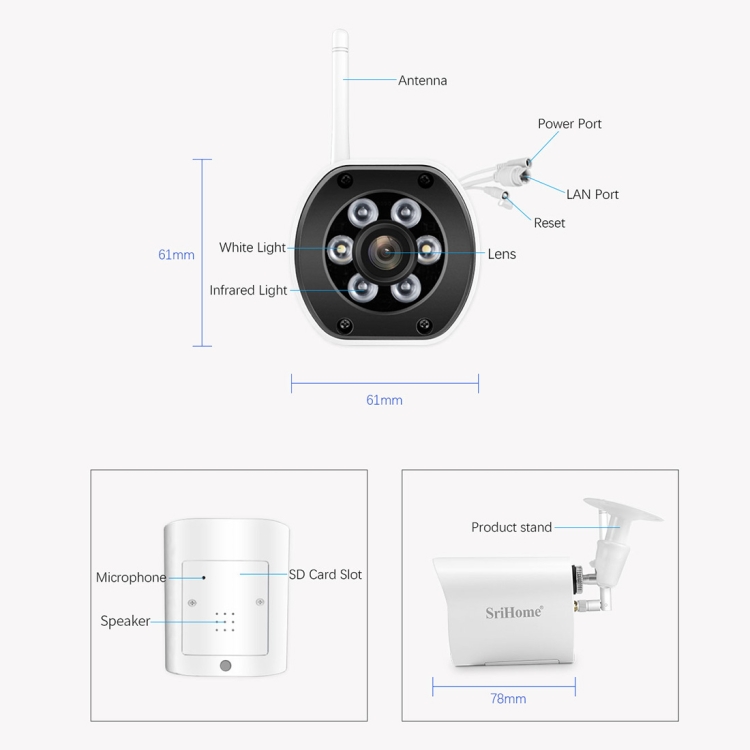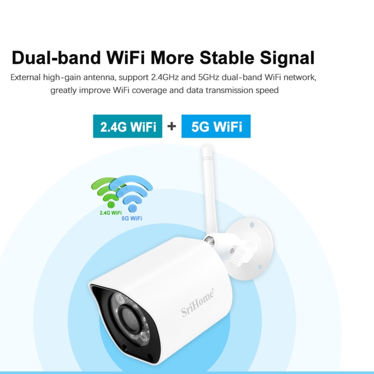 SriHome SH034 5.0MP Mini Dual 2.4 / 5G WiFi Outdoor Waterproof Video Surveillance Color Night Vision Security CCTV Cam, US Plug, UK Plug, AU Plug