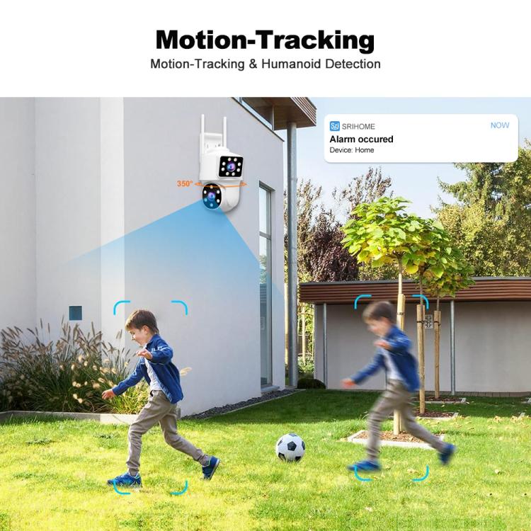 8. Dual-lens Panoramic Monitoring: Simultaneously monitor two different areas. The fixed + pan-tilt dual-lens design enables multi-angle panoramic monitoring.