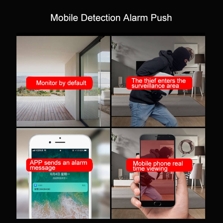 Equipped with H.265 video encoding technology, the recording video can be compressed on the device side; in the network environment, the same picture quality, H.265 can achieve double the transmission speed compared to H.264, when viewing on the APP side, Achieve a smoother picture, not stuck